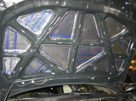 2) Шумоизоляция капота особенно актуальна для дизельных моделей. Грамотный подбор и применение вибродемпферов снижают и шум, и вибрацию агрегата. Не стоит экономить на шумоизоляции багажника из соображений, что он в зону салона не входит. Правильная его изоляция добавляет свой процент в общий уровень понижения шума.